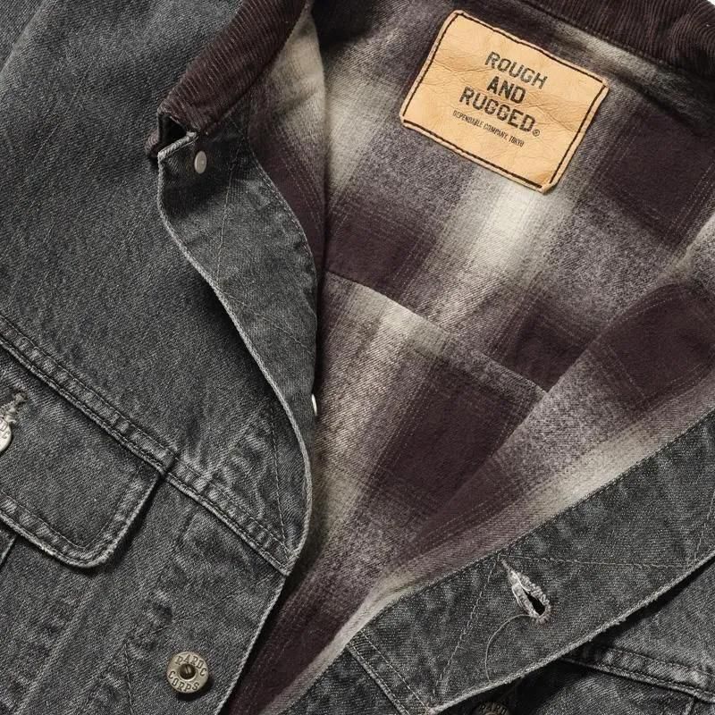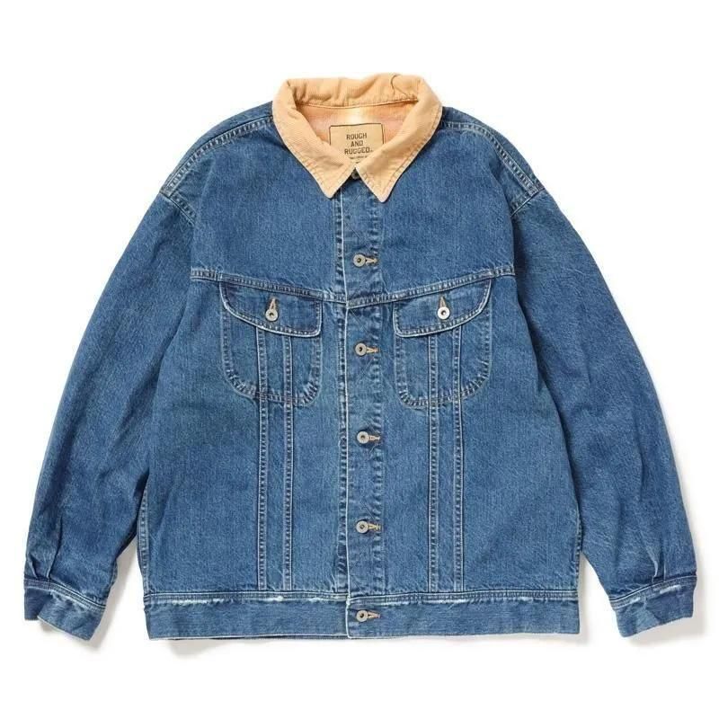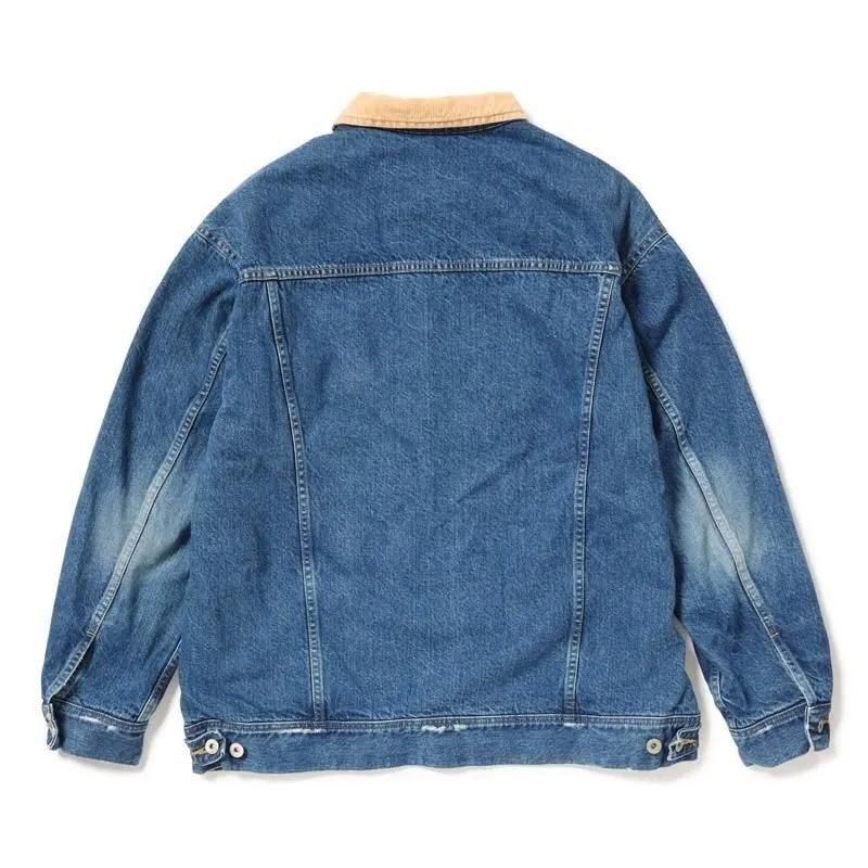 加工手法の途中段階のブリーチにより襟コーデュロイ部分や