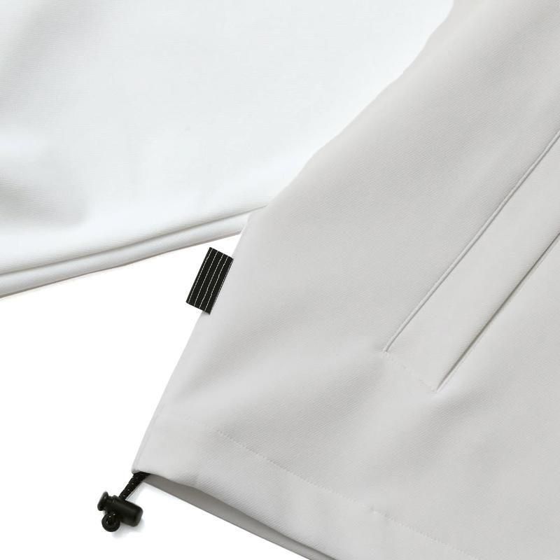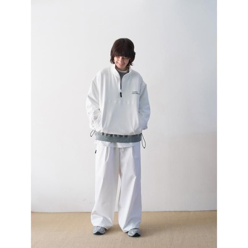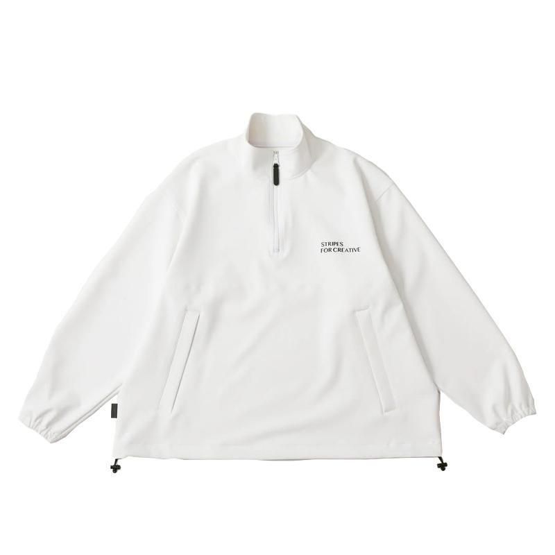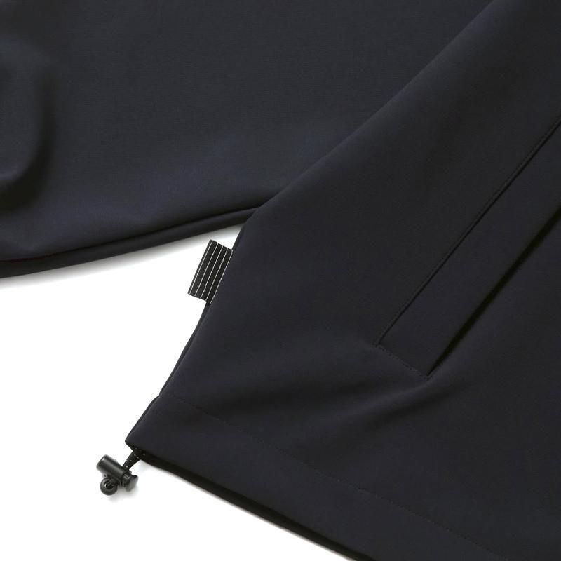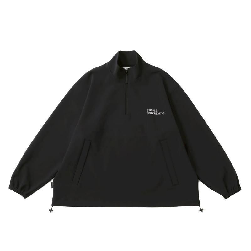 裾のドローコードでシルエットアレンジ可能なオーバーサイズのHALF ZIP JACKET。