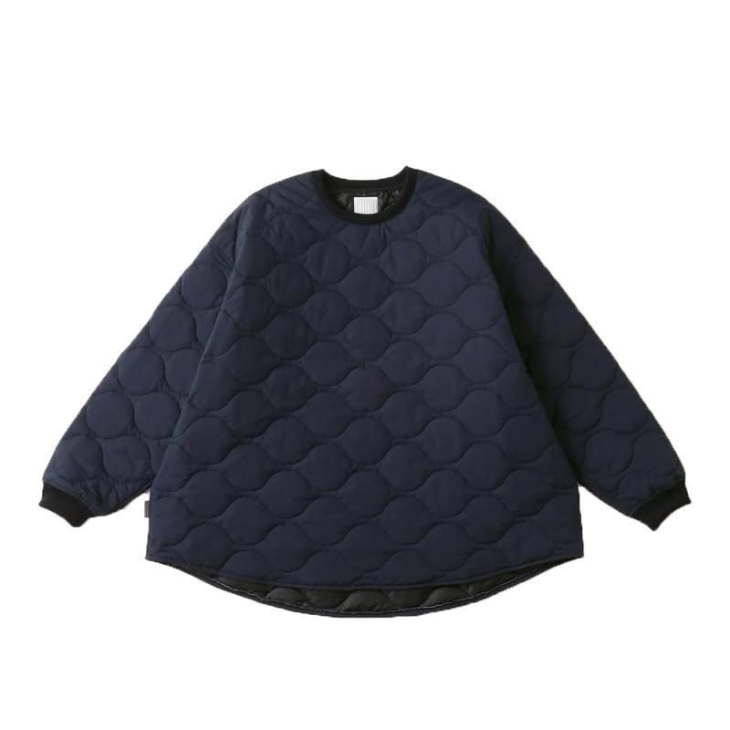 オーバーサイズのインナーを着用してもストレスが無いようにデザインしたビッグサイズの中綿入り長袖プルオーバートップ。