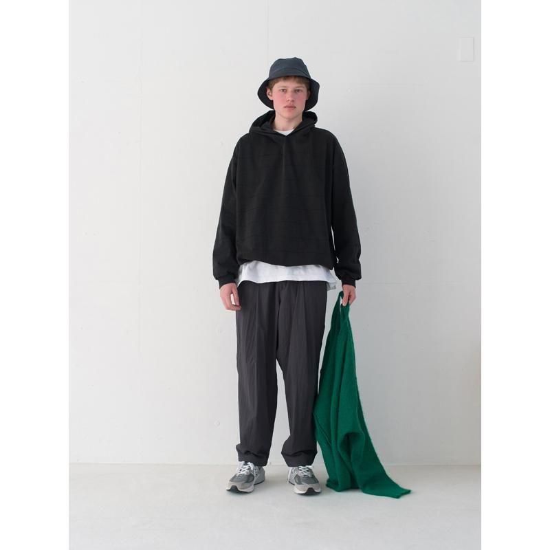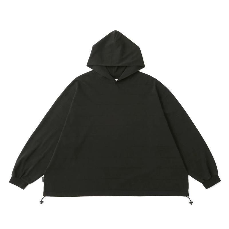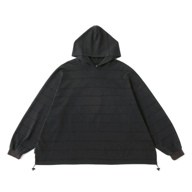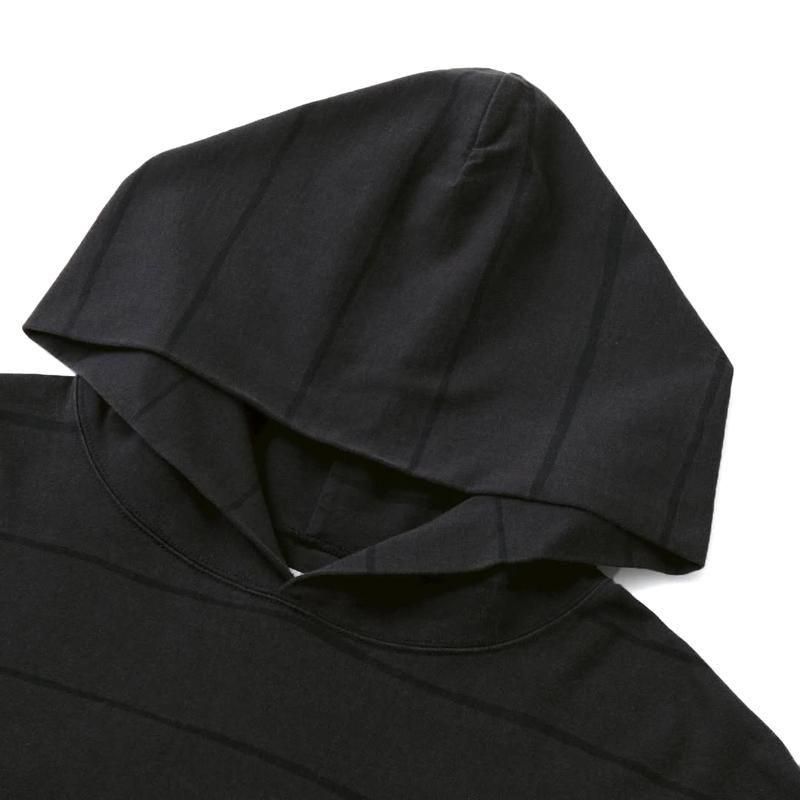 SFCオリジナルサイドストライプ柄だけを残して背景の色だけを落とした抜染加工を施したビッグシルエットのフード付きLS TEE。