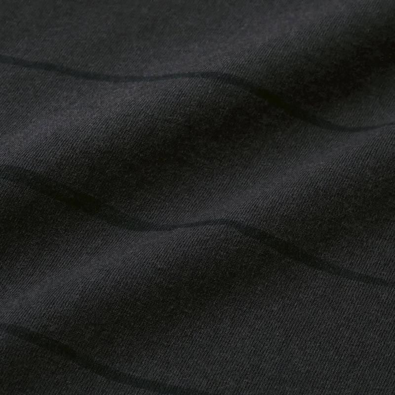 素材は30SのMVS(羽毛の少ない糸)を使用し引き揃えて編む事でハリ感を持たせた、しっかりとした厚手の天竺です。