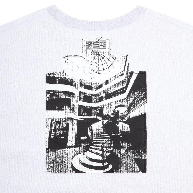 前身頃にグラフィック。後ろ身頃裏に布パッチ。後ろ身頃表にリフレクタープリント。
