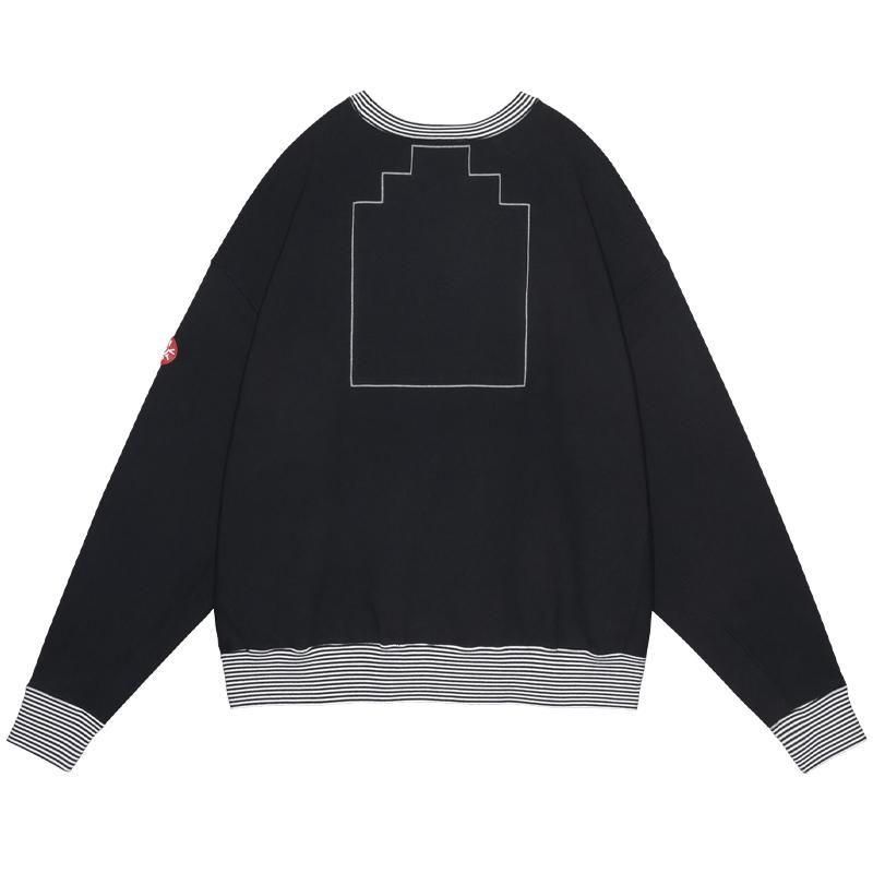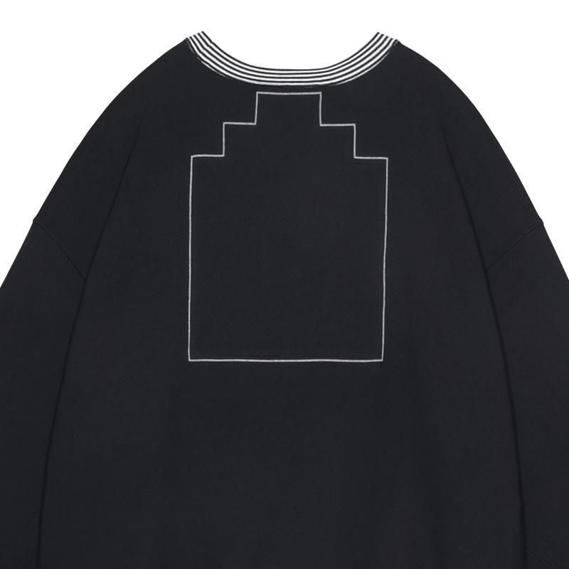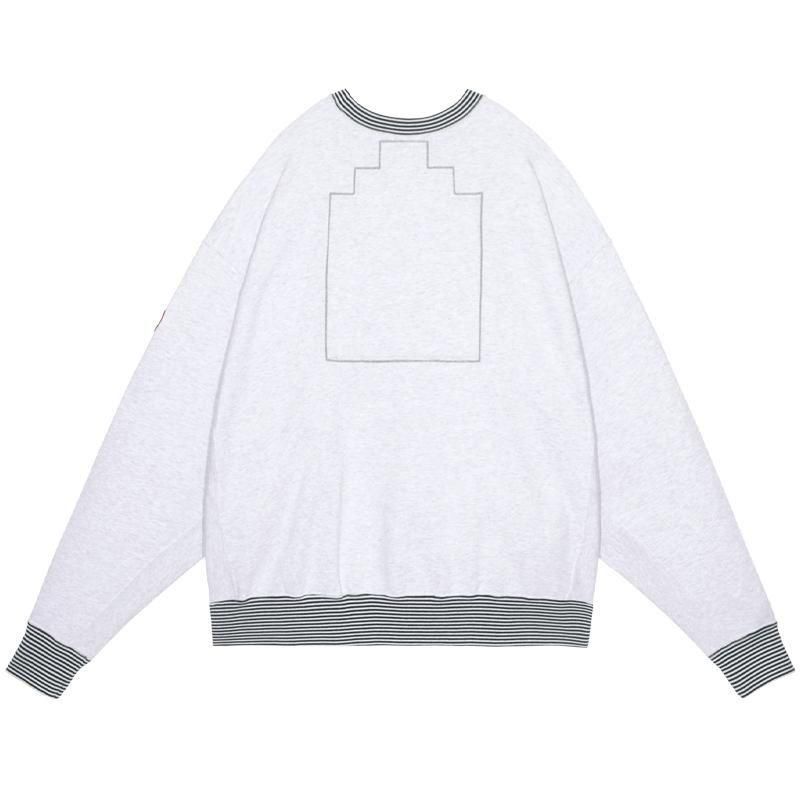 襟、袖口、裾にストライプリブ。