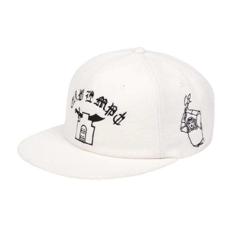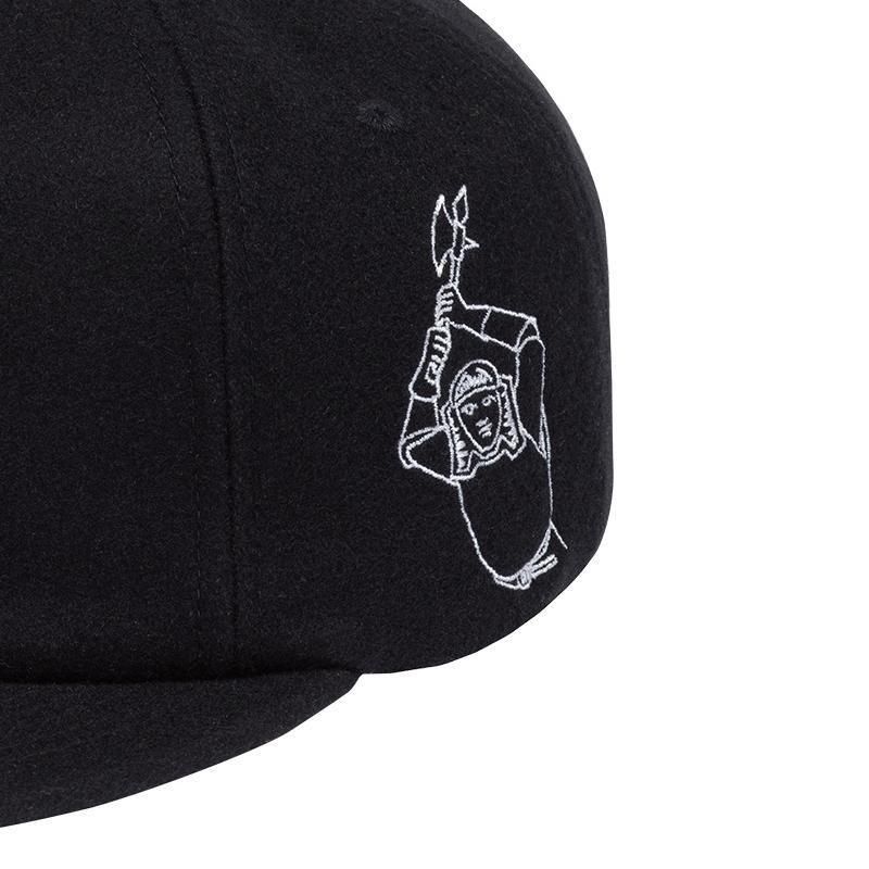 6パネル。ストラップバック。フロント、サイド、バックに刺繍でグラフィック。