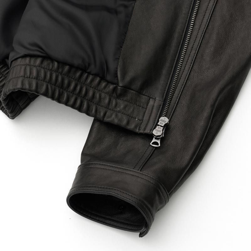まるで春の日の軽いブルゾンを冬でも着用できるように革製品で表現したアイテムです