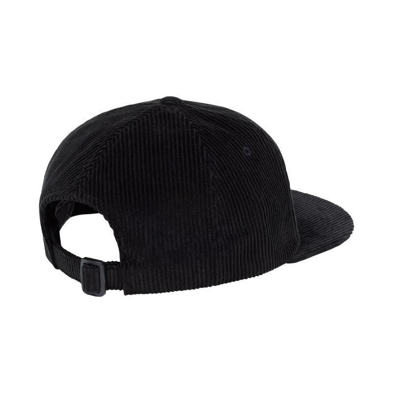 6パネル。ストラップバック。フロント、サイドに刺繍でグラフィック。天ボタン。